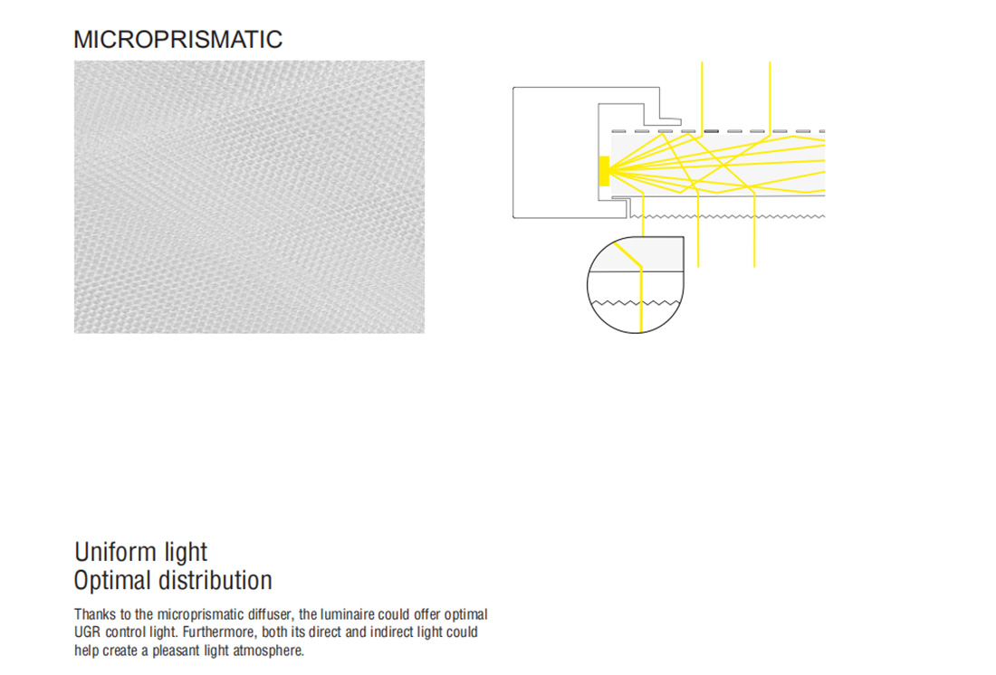 2. The use of micro-prismatic diffusion cover makes the anti-glare better controlled, UGR <19, reducing visual fatigue. Unlike traditional opal panel lights, it is not easy to darken around.
